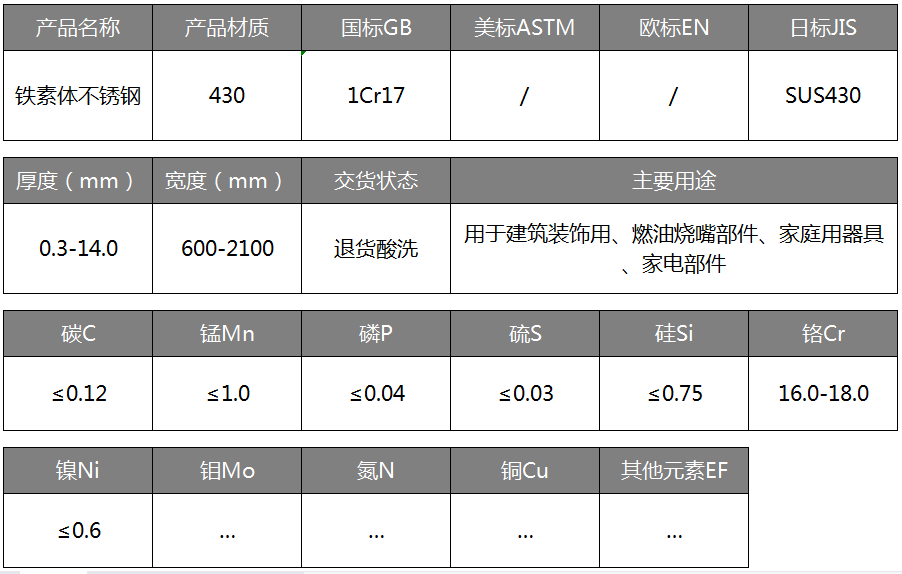 A:不锈钢带按硬度分:一般分为软态(HV150度左右),四分之一H(HV180度以上)、二分之一H(HV310度以上)、四分之三H(HV370度以上)、H(HV430度以上)、EH(HV490度以上)、SH(HV530度以上)等不锈钢带,如304不锈钢带中的DDQ不锈钢带。材料硬度为130度,此材料为深拉伸材料,加工性能良好。