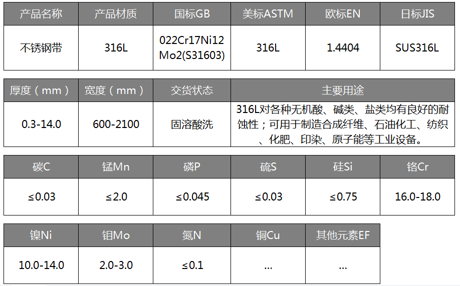 316L的Mo含量使得该钢种拥有优异的抗点蚀能力,可以安全的应用于含Cl-等卤素离子环境。由于316L主要应用的是其化学性能,钢厂对316L的表面检查要求稍低(相对304),对表面要求较高的客户要加强表面检查力度。