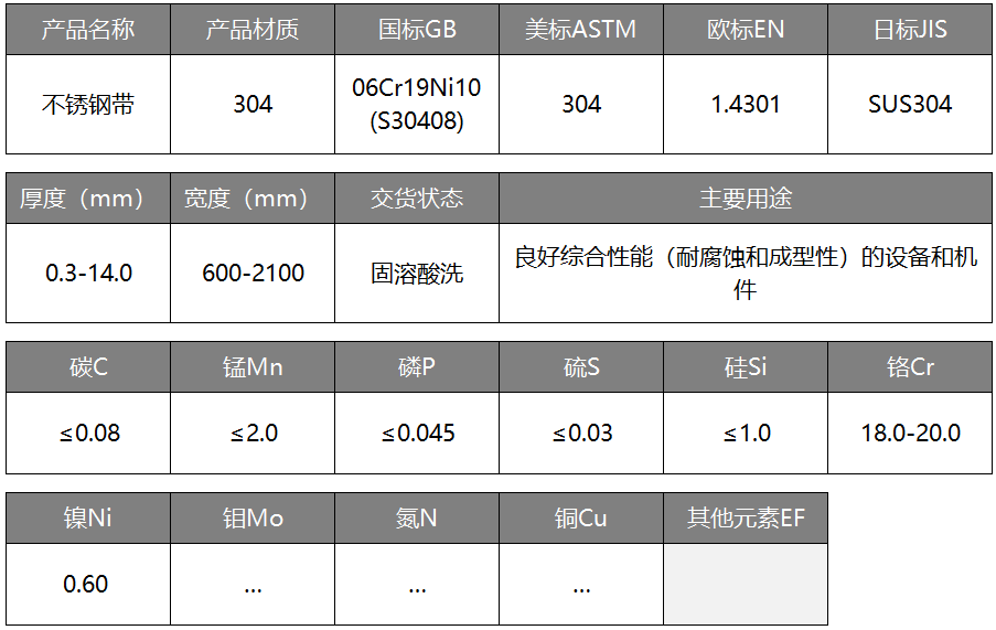 A:不锈钢带按硬度分:一般分为软态(HV150度左右),四分之一H(HV180度以上)、二分之一H(HV310度以上)、四分之三H(HV370度以上)、H(HV430度以上)、EH(HV490度以上)、SH(HV530度以上)等不锈钢带,如304不锈钢带中的DDQ不锈钢带。材料硬度为130度,此材料为深拉伸材料,加工性能良好。